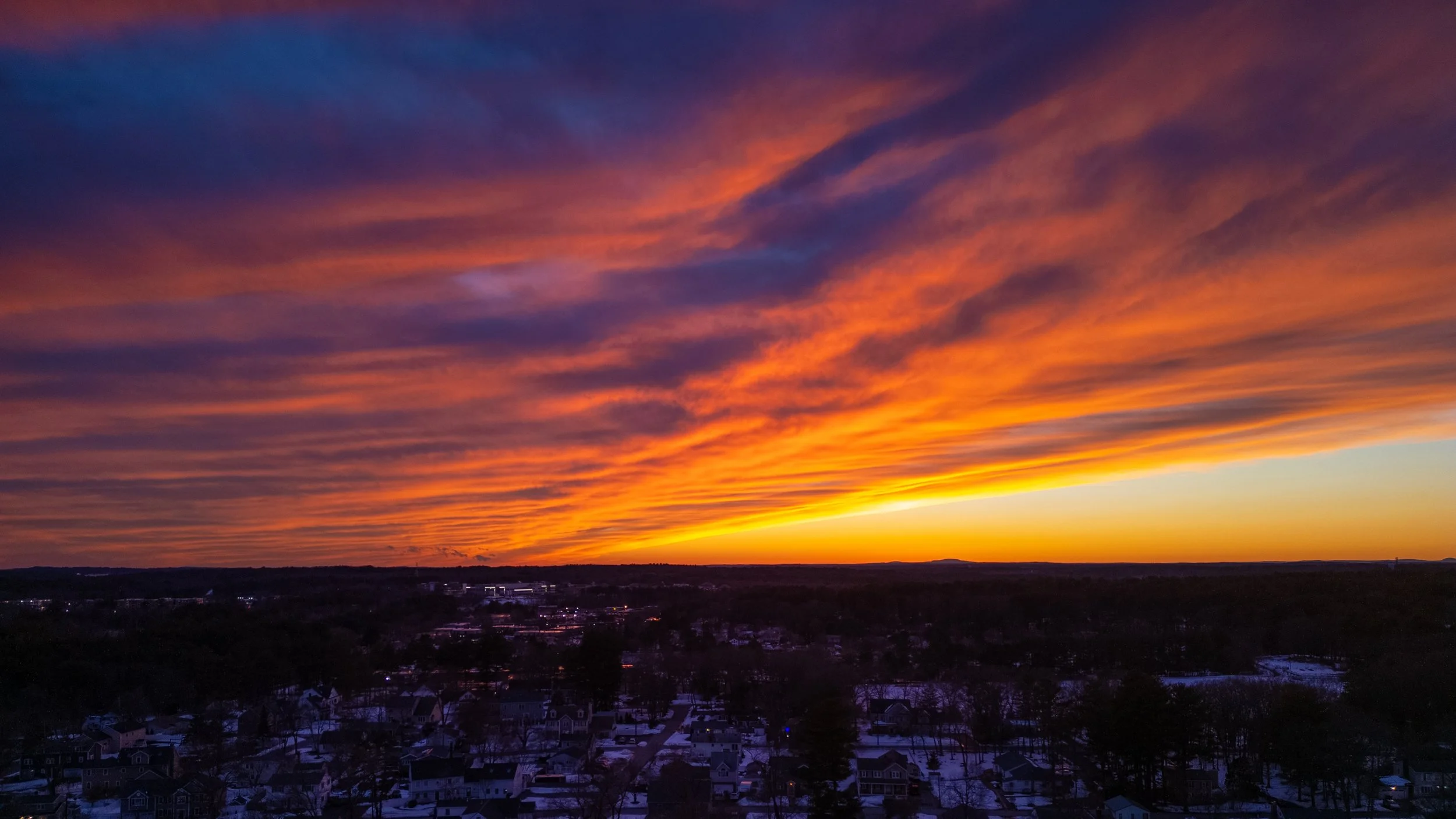 Had to go for a flight with my drone to capture this stunning sunset earlier in the evening. The photo doesn't do it justice... the sky was lit up with hues of orange and red that accentuated the whispy low level clouds. Just beautiful.